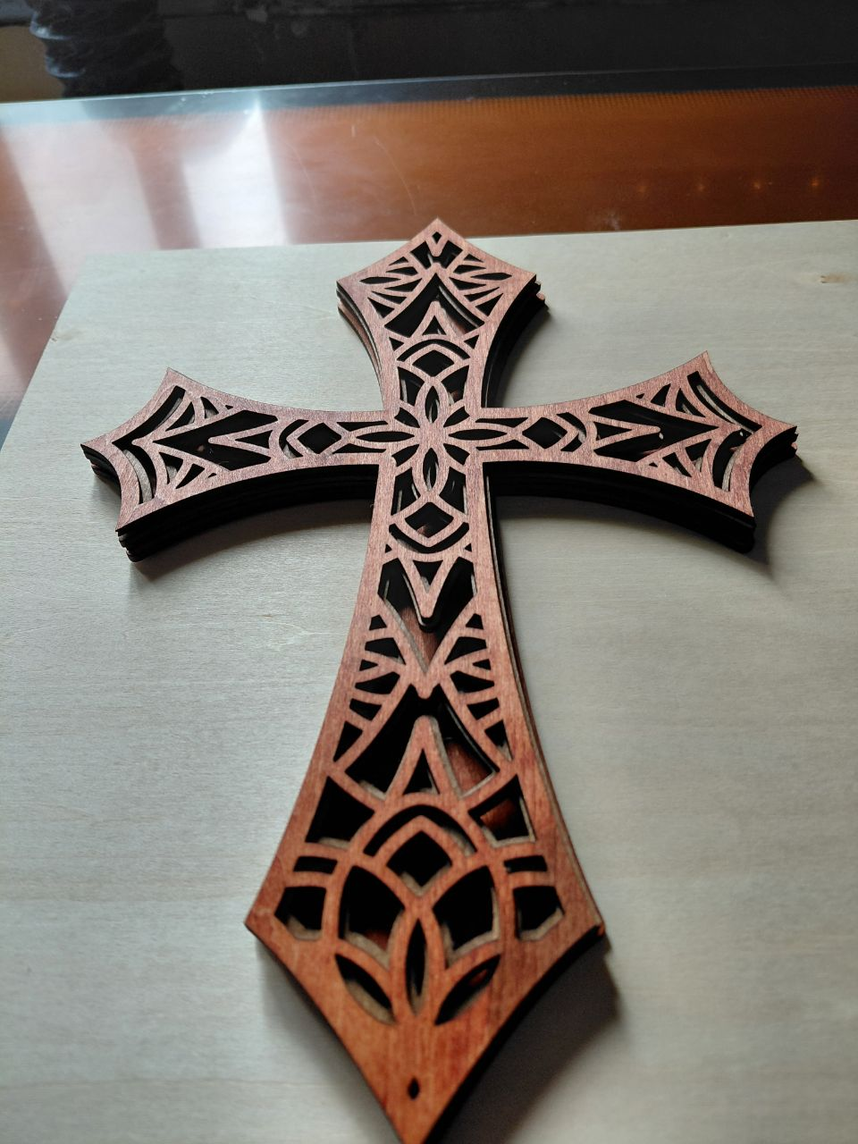 Wall Cross – 4 Layer Laser Cut – All Wood – 11 1/2 Inches Tall